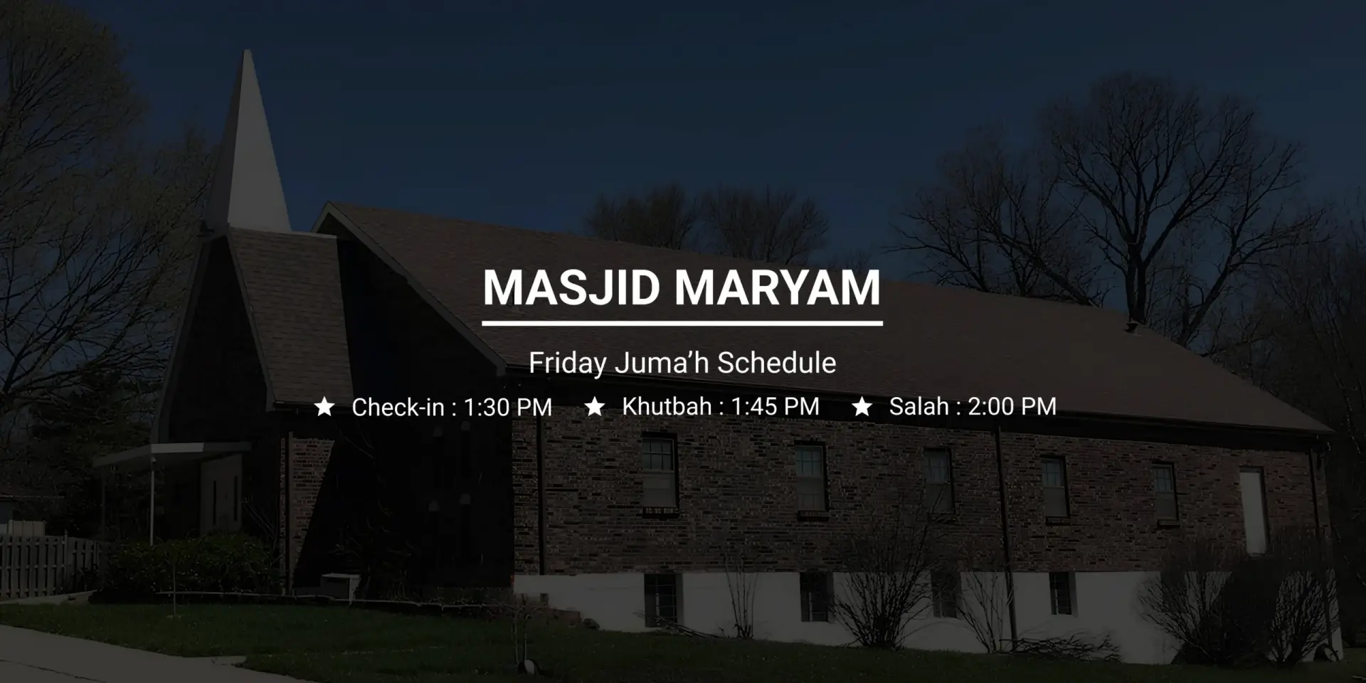 Check-in 1:30 PM, Khutbah 1:45 PM and Salah 2 PM